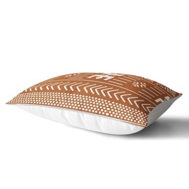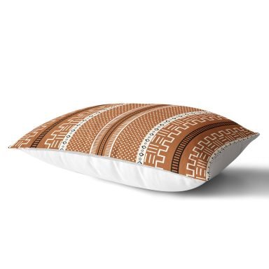 Kahve & Beyaz Zemin Etnik Figürlü Bohem Desenli Dijital Baskılı Dekoratif Dikdörtgen Kırlent Kılıfı