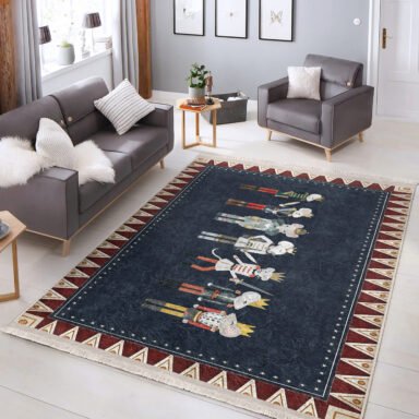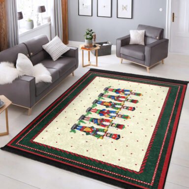 Çizgili Kırmızı-Green Nutcracker Desenli Modern Salon Halısı – Kaymaz Tabanlı Yıkanabilir Halı