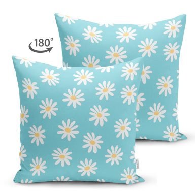 Mavi Zemin Papatya Çizimli Dijital Baskılı Modern Süet Yastık Kırlent Kılıfı