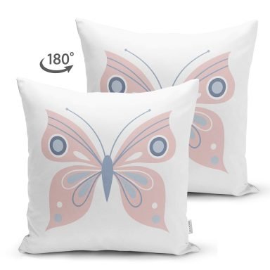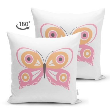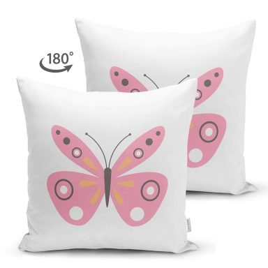 Pembe Kelebek Tasarımlı Dijital Baskılı Modern Süet Yastık Kırlent Kılıfı
