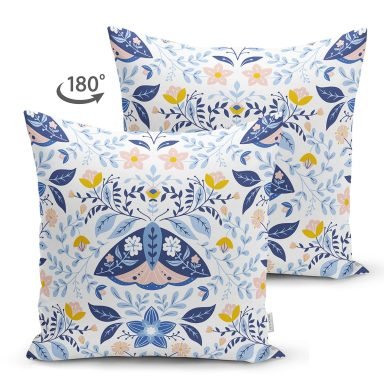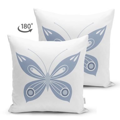 Mavi Kelebek Motifli Dijital Baskılı Dekoratif Süet Yastık Kırlent Kılıfı