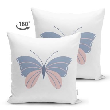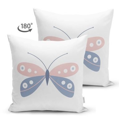 Mavi Pembe Kelebek Desenli Dijital Baskılı Modern Süet Yastık Kırlent Kılıfı