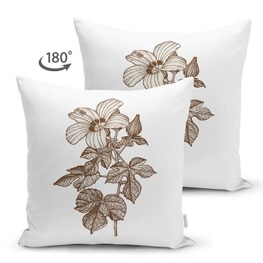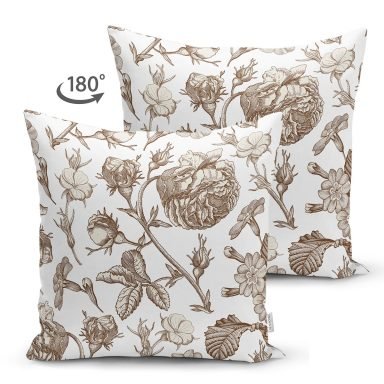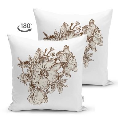 Karakalem Çiçek Desenli Dijital Baskılı Dekoratif Süet Yastık Kırlent Kılıfı