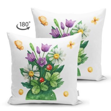 Natural Floral Tasarımlı Dijital Baskılı Modern Süet Yastık Kırlent Kılıfı