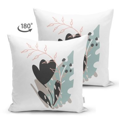 Sanatsal Yaprak Çizimli Dijital Baskılı Modern Süet Yastık Kırlent Kılıfı