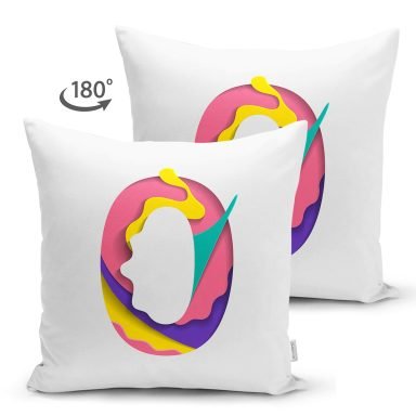 Beyaz Zemin Renkli 0 Rakamlı Özel Tasarım Modern Suet Yastık Kırlent Kılıfı