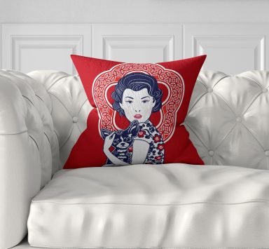 Beyaz Zeminde Gül Ve Portre Tasarımlı 5’Li Kırlent Kılıf Seti