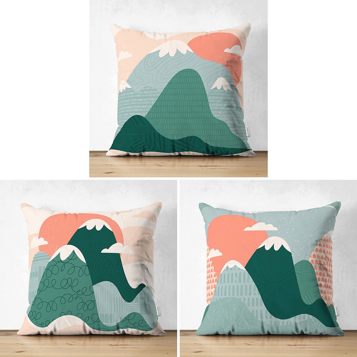 3’lü Renkli Zemin Üzerinde Onedraw Çizimli Modern Süet Yastık Kırlent Kılıf Seti