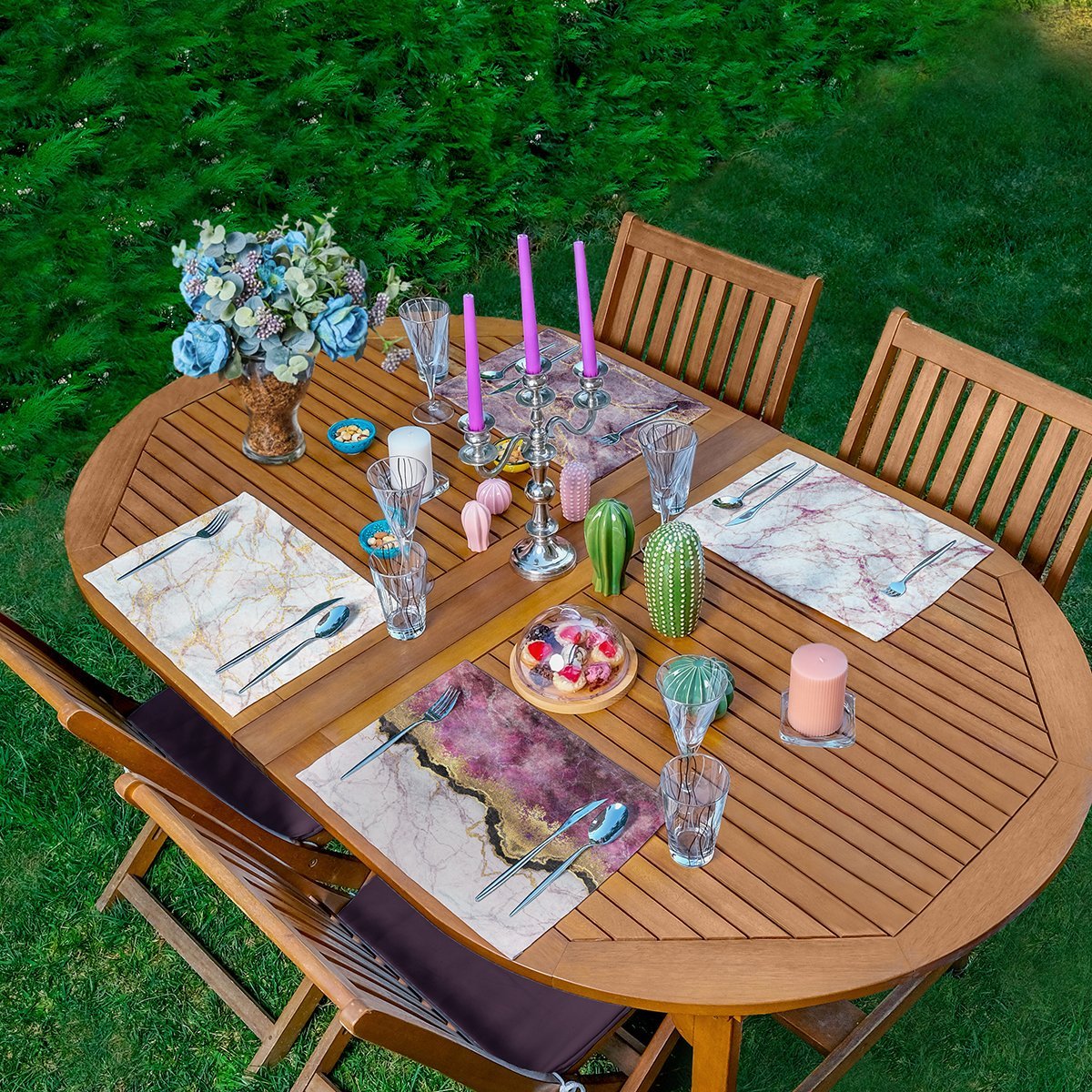 4’lü Mor Mermer Tasarımlı Amerikan Servis Seti