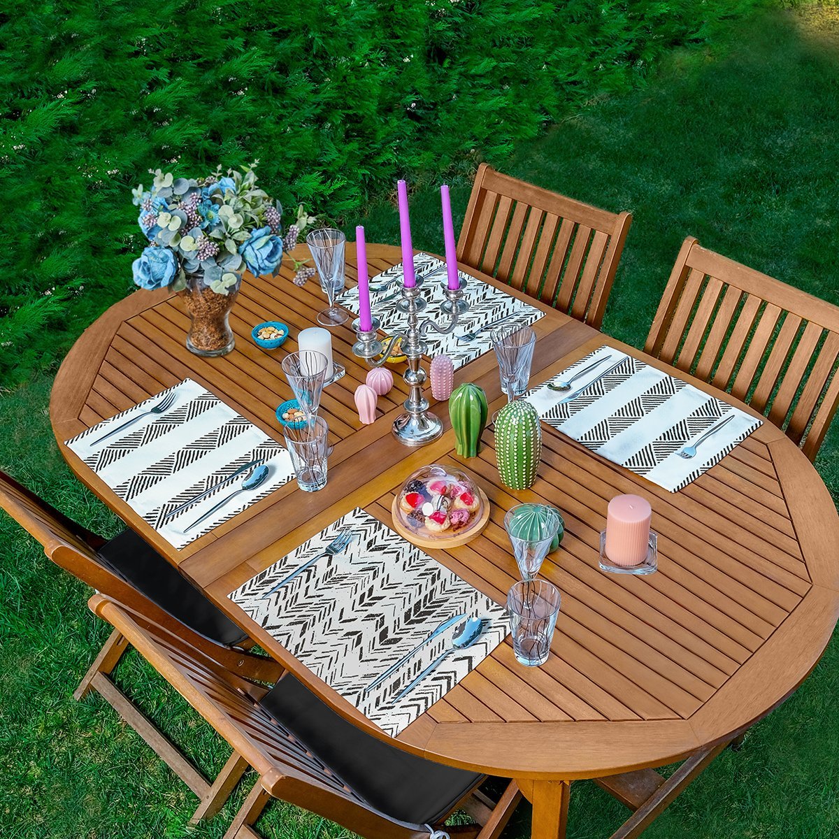 4’lü Özel Tasarım İskandinav Çizimli Amerikan Servis Seti