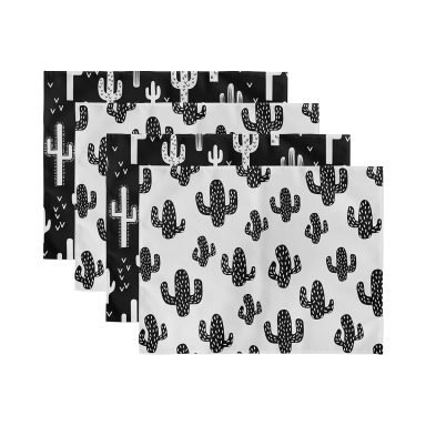4’lü Siyah Beyaz Kaktüs Tasarımlı Amerikan Servis Seti