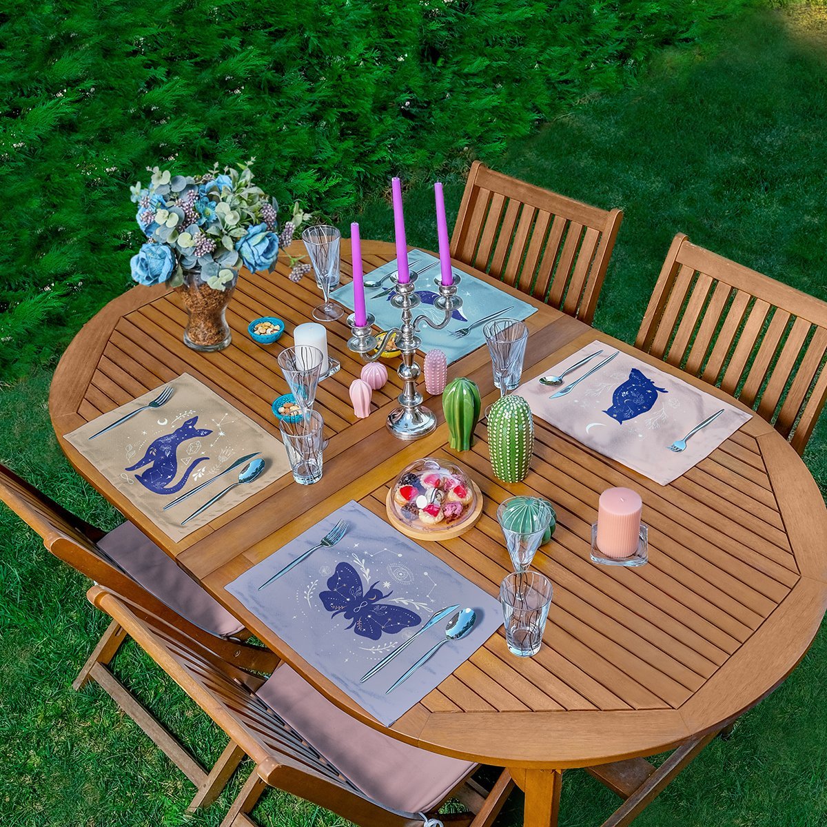 4’lü Soyut Sevimli Hayvan Baskılı Amerikan Servis Seti