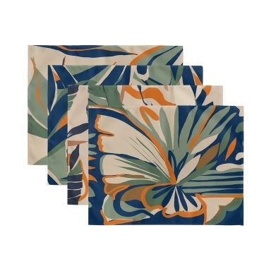 4’lü Suluboya Temalı Tropik Yaprak Tasarımlı Dijital Baskılı Sunumluk – Sunum Altlığı – Amerikan Servis Seti
