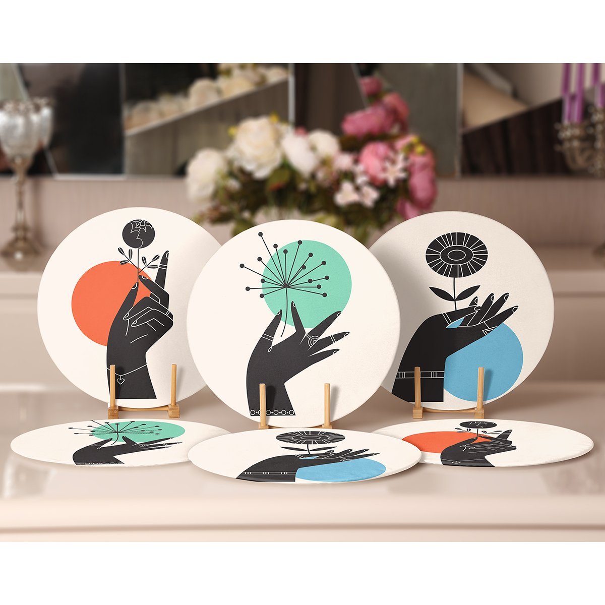 6’lı Çiçek Tasarımlı El Motifli Servis Altlığı & Supla