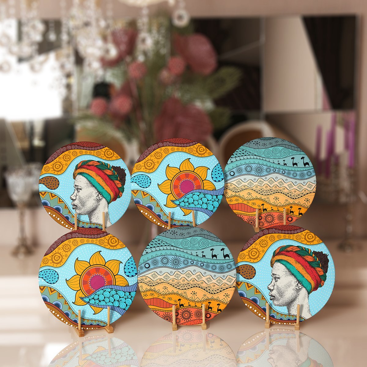 6’lı Etnik Tasarımlı Renkli Servis Altlığı & Supla