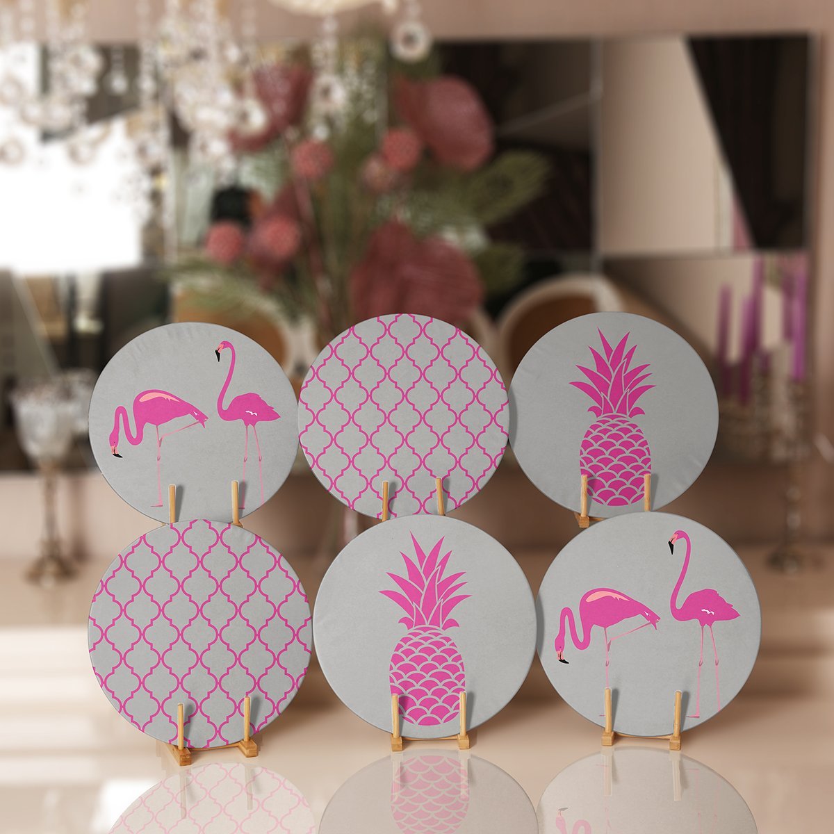 6’lı Gri Fuşya Özel Tasarımlı Servis Altlığı & Supla