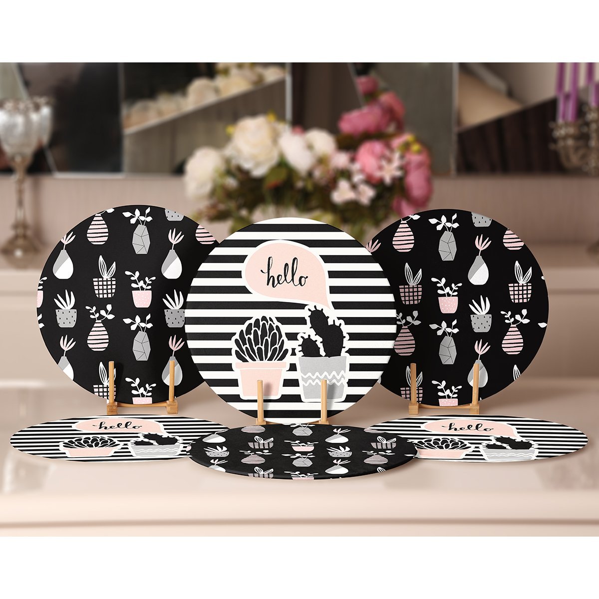 6’lı Hello Kaktüs Tasarımlı Servis Altlığı & Supla