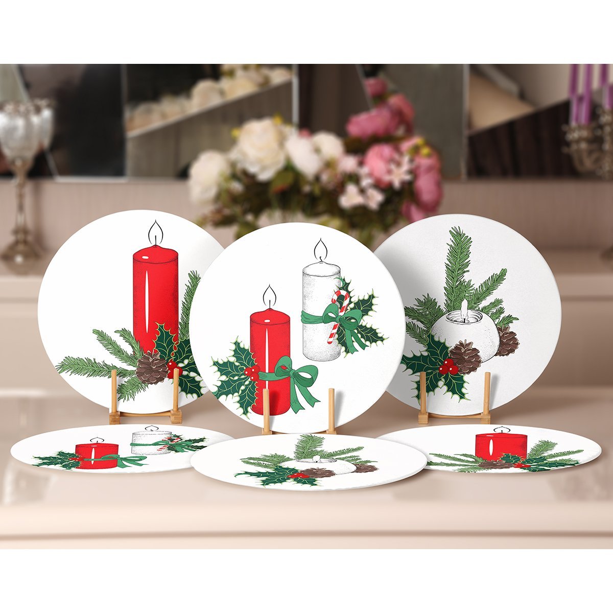 6’lı Kırmızı Mum Şamdan Tasarımlı Servis Altlığı & Supla