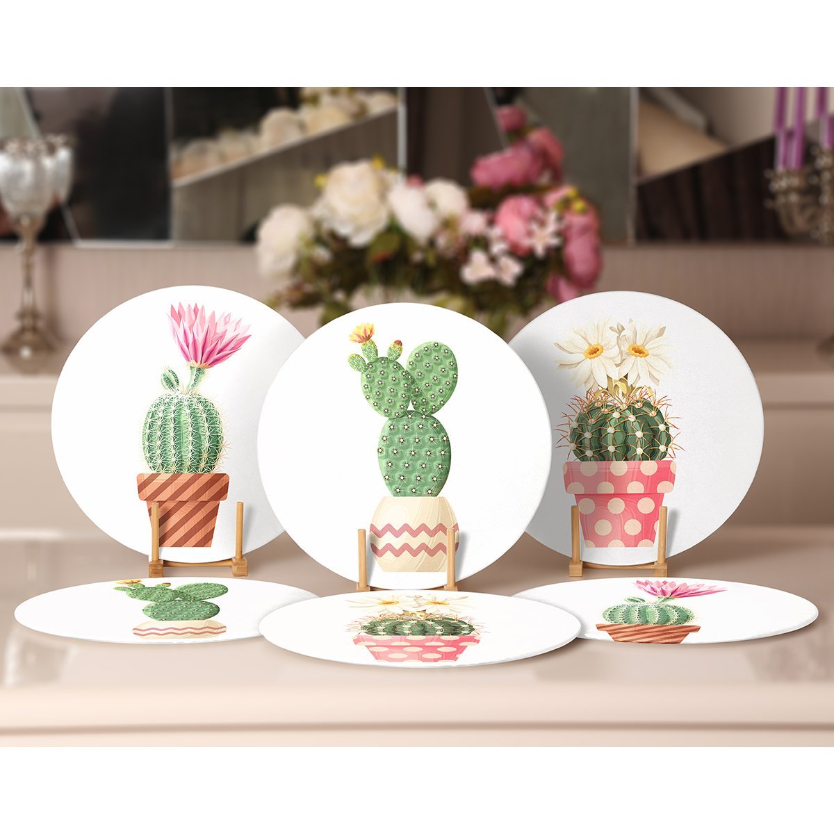 6’lı Sevimli Saksılı Kaktüs Tasarımlı Servis Altlığı & Supla