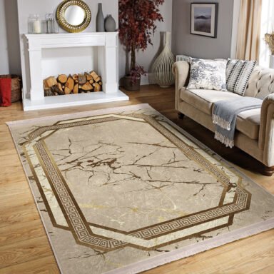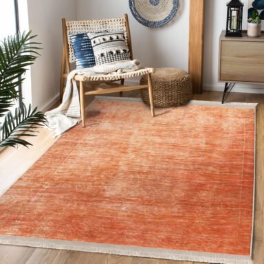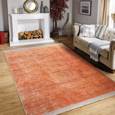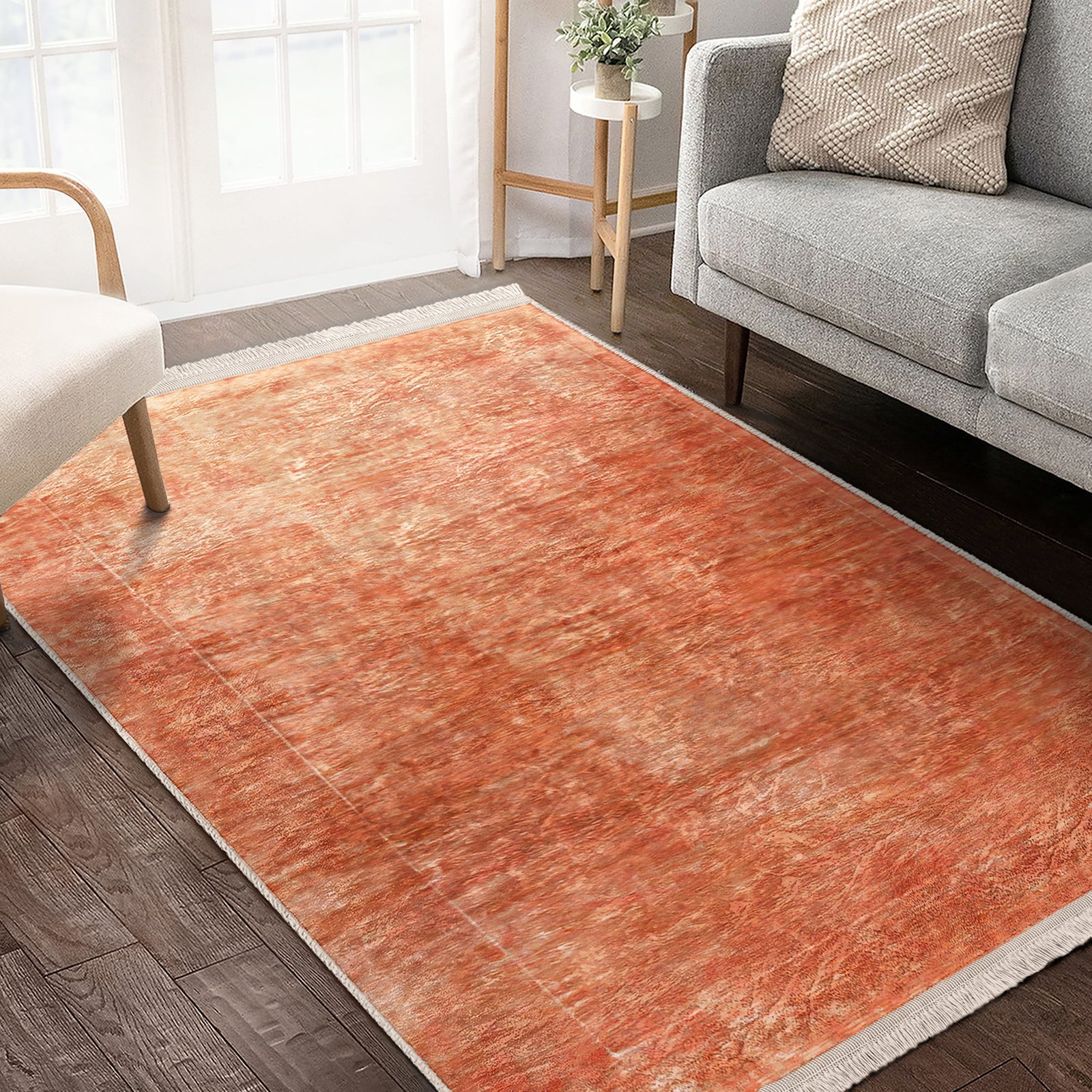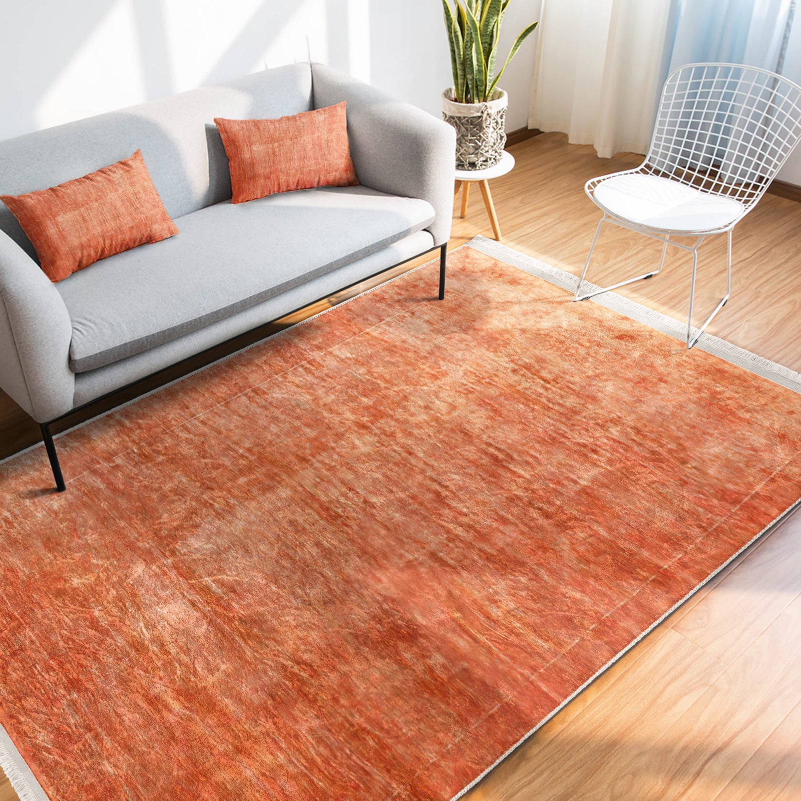 Açık Turuncu Zemin Üzerinde Modern Doku Motifli Şık Salon Halısı – Yıkanabilir Kaymaz Tabanlı
