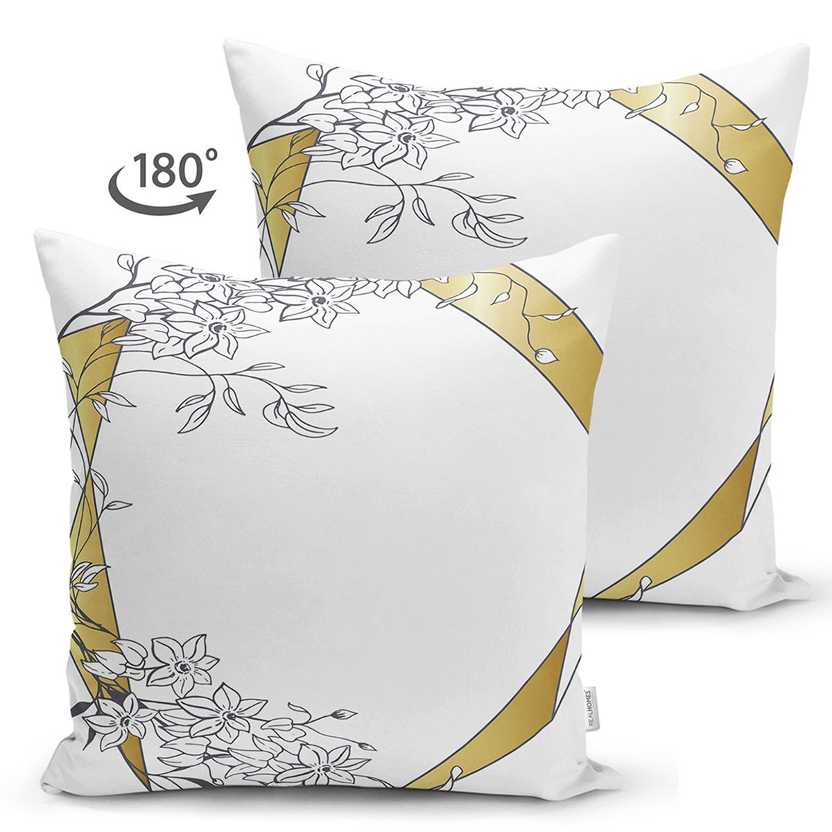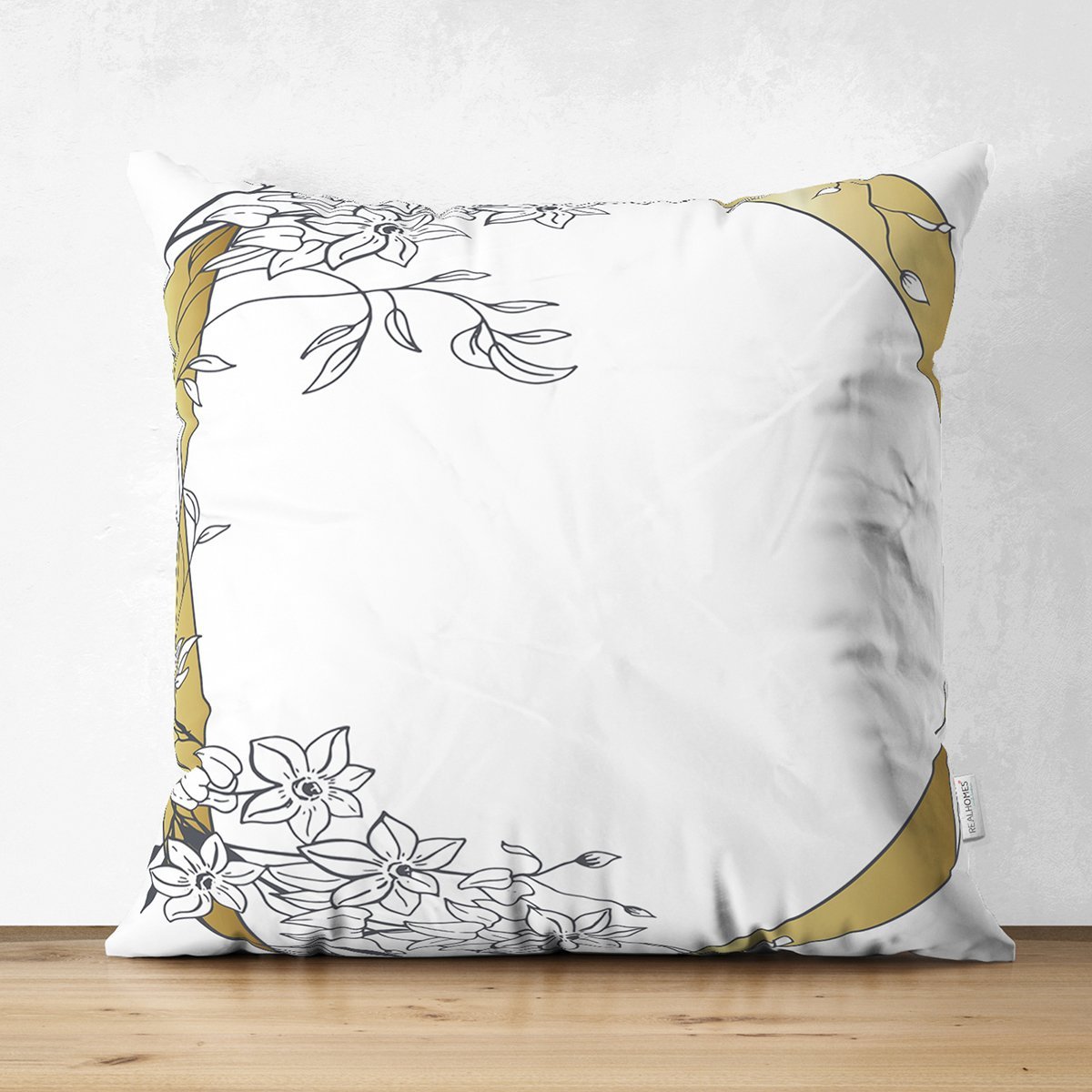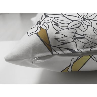 Beyaz Zemin Üzerinde Gold Detaylı Gül Motifli Dijital Baskılı Modern Süet Yastık Kırlent Kılıfı