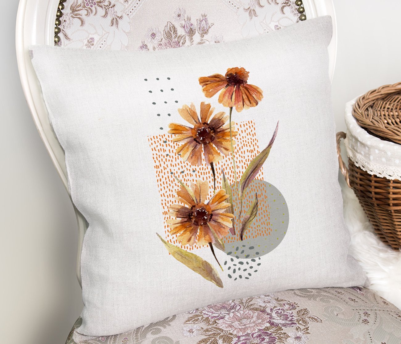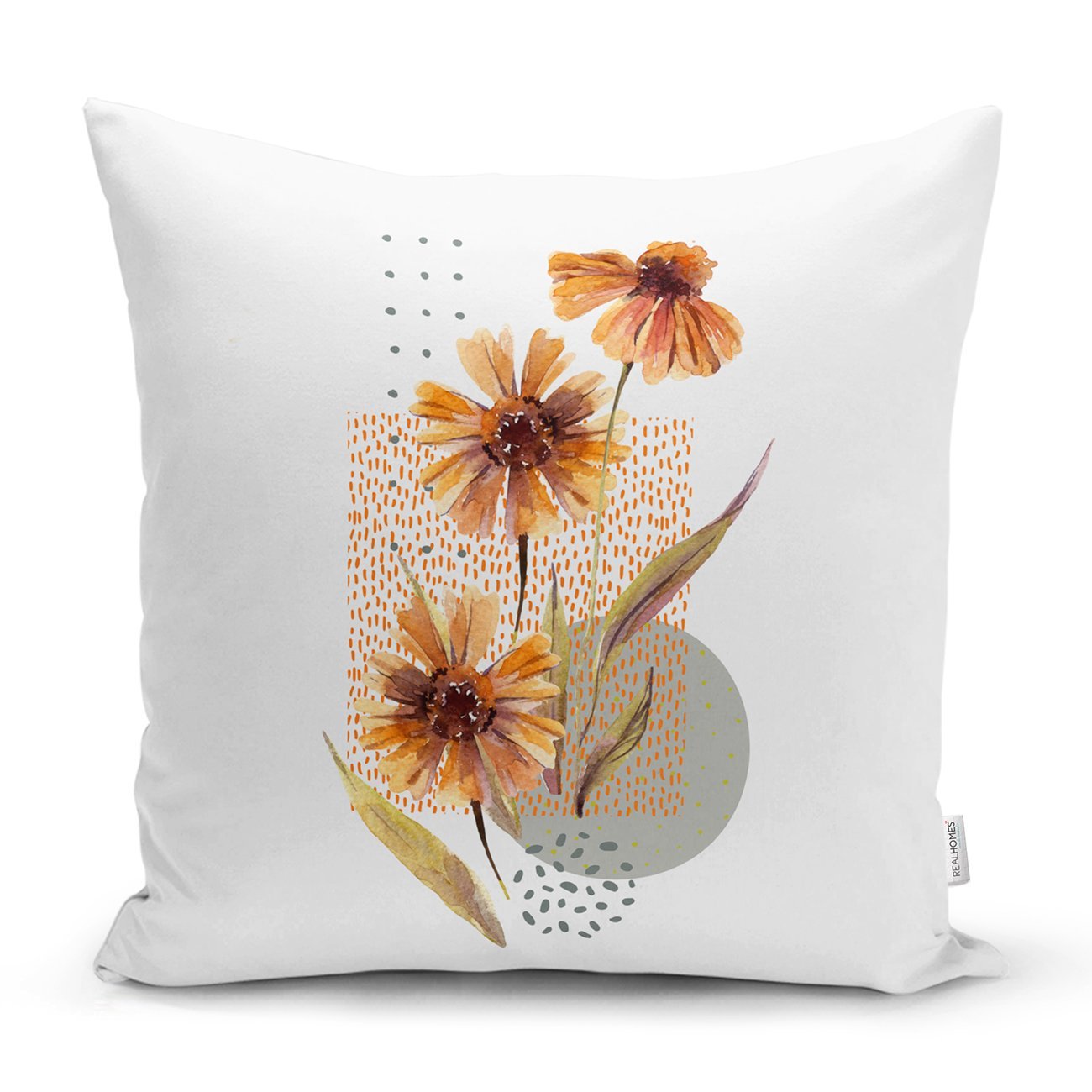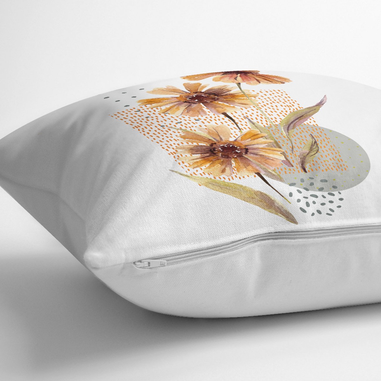 Beyaz Zemin Üzerinde Kurumuş Çiçek Motifli Modern Yastık Kılıfı