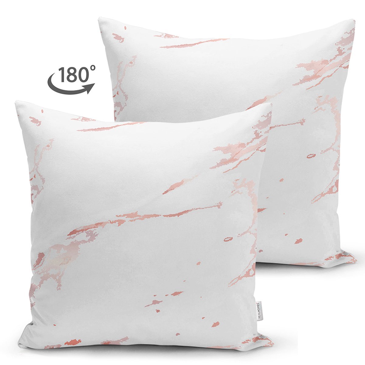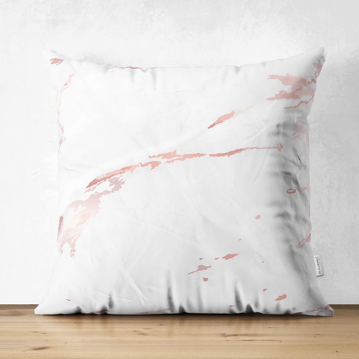 Beyaz Zemin Üzerinde Modern Mermer Desenli Dijital Baskılı Modern Süet Yastık Kırlent Kılıfı