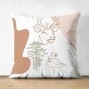 Beyaz Zemin Üzerinde Onedraw Çizimli Bayan Silüeti Dijital Baskılı Modern Süet Yastık Kırlent Kılıfı