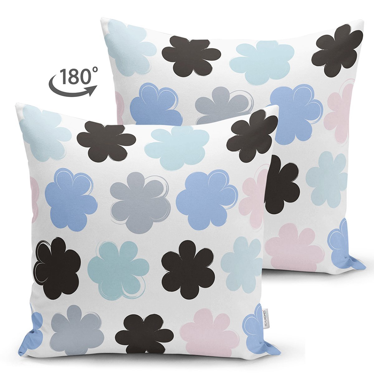 Beyaz Zemin Üzerinde Renkli Modern Çiçek Desenli Dijital Baskılı Modern Süet Yastık Kırlent Kılıfı