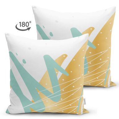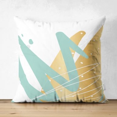 Beyaz Zemin Üzerinde Renkli Modern Desenli Dijital Baskılı Modern Süet Yastık Kırlent Kılıfı