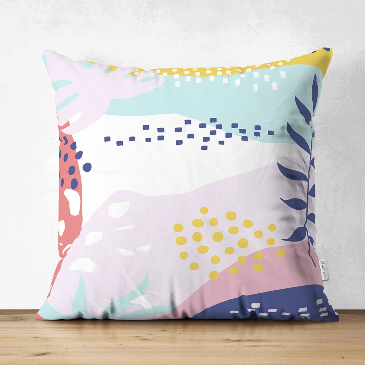 Beyaz Zemin Üzerinde Renkli Onedraw Çizimli Dijital Baskılı Modern Süet Yastık Kırlent Kılıfı