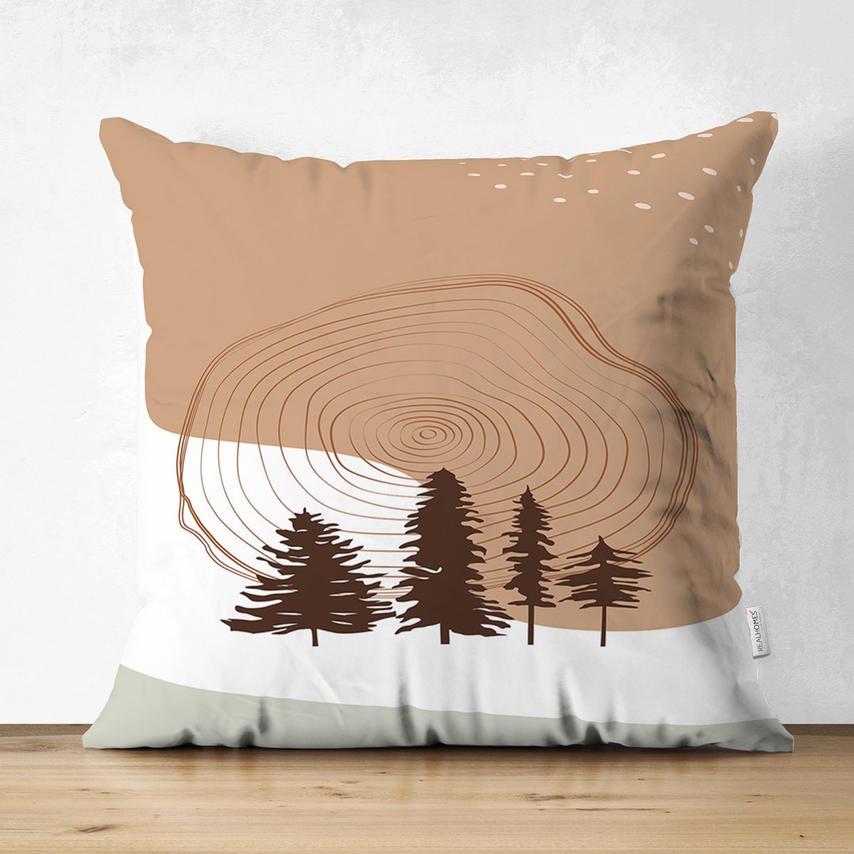 Beyaz Zeminde Çam Ağacı Desenli Dijital Baskılı Modern Süet Yastık Kırlent Kılıfı
