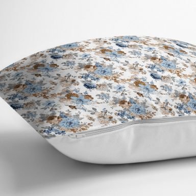 Beyaz Zeminde Çiçek Figürlü Özel Tasarım Dijital Baskılı Modern Yastık Kırlent Kılıfı