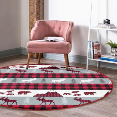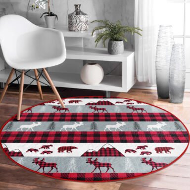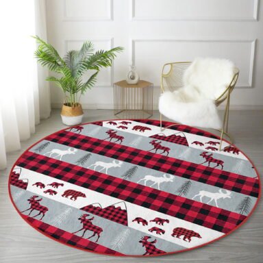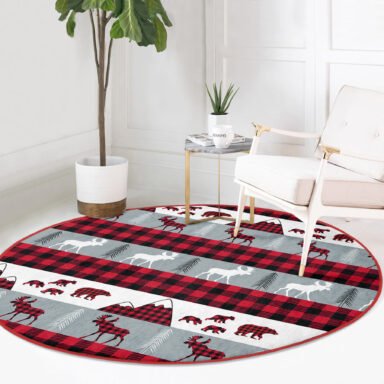 Beyaz Zeminde Ekose Desenli Geyik Bordo Koridor Ve Antre Yıkanabilir Kaymaz Tabanlı Yuvarlak Halı