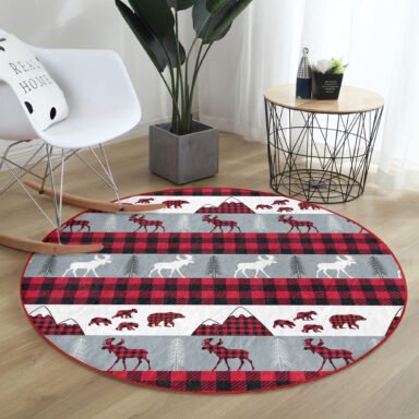 Beyaz Zeminde Ekose Desenli Geyik Bordo Koridor Ve Antre Yıkanabilir Kaymaz Tabanlı Yuvarlak Halı