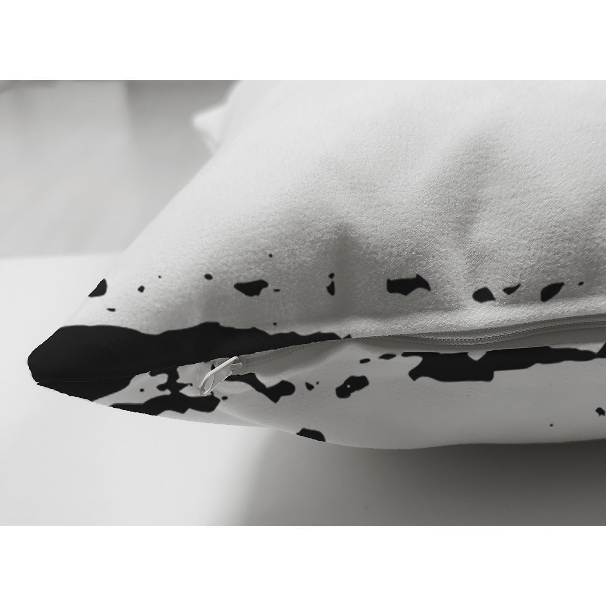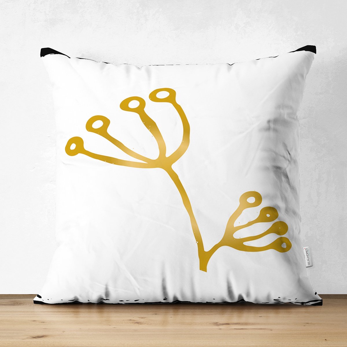 Beyaz Zeminde Gold Detaylı Onedraw Çizimli Çiçek Desenli Dijital Baskılı Modern Süet Yastık Kırlent Kılıfı