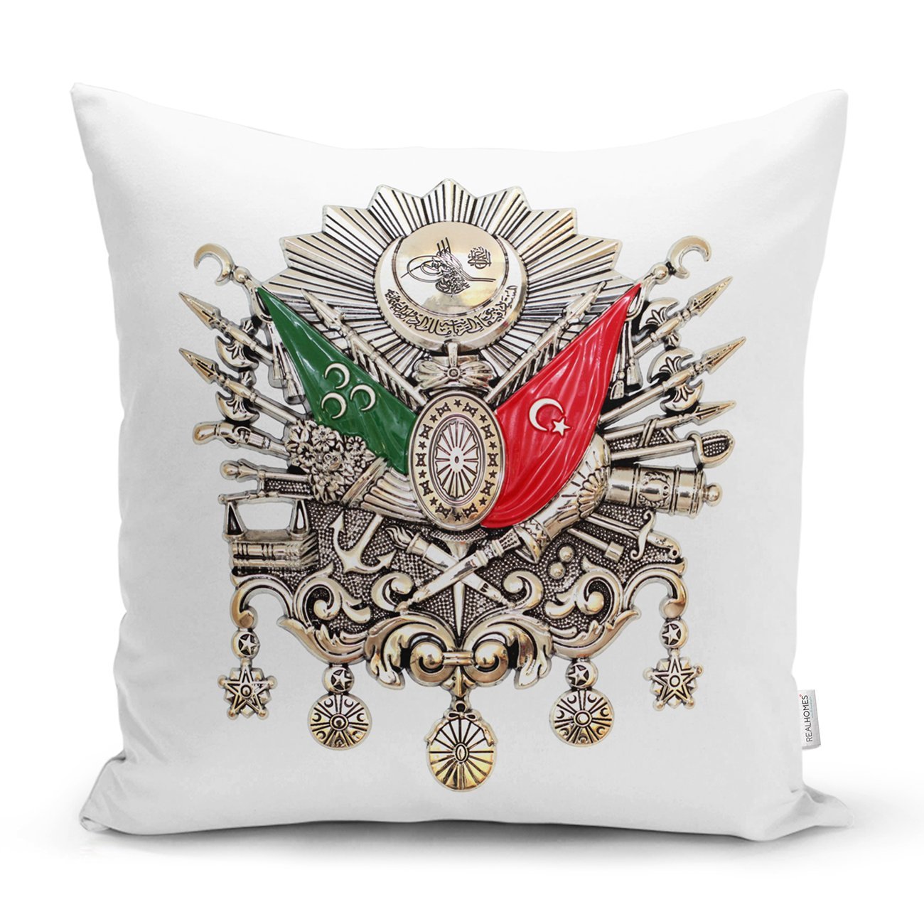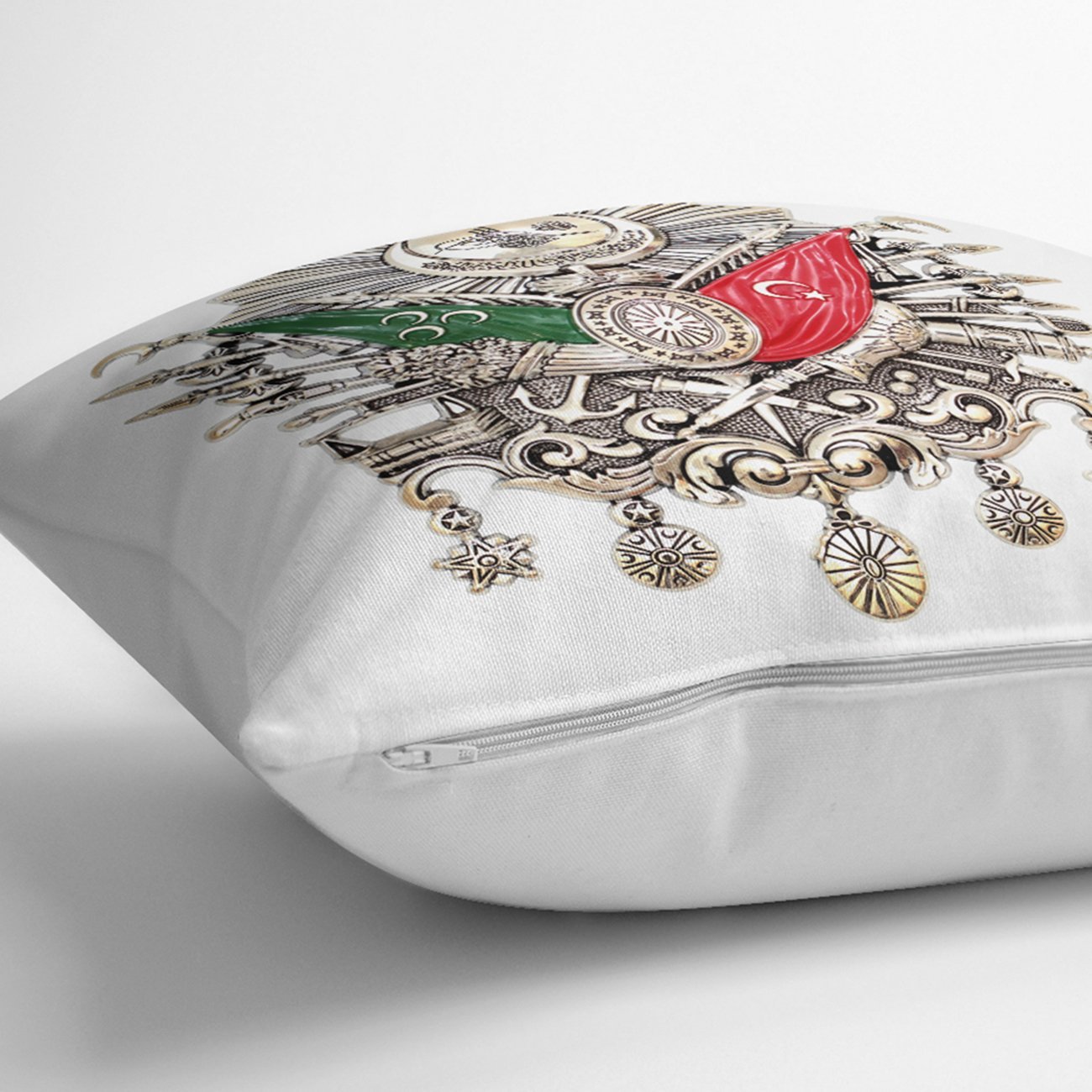Beyaz Zeminde Osmanlı Devlet Arması Modern Kırlent Kılıfı