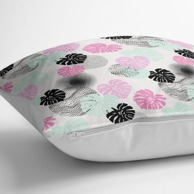 Beyaz Zeminde Renkli Trorik Yapraklar Kırlent Kılıfı