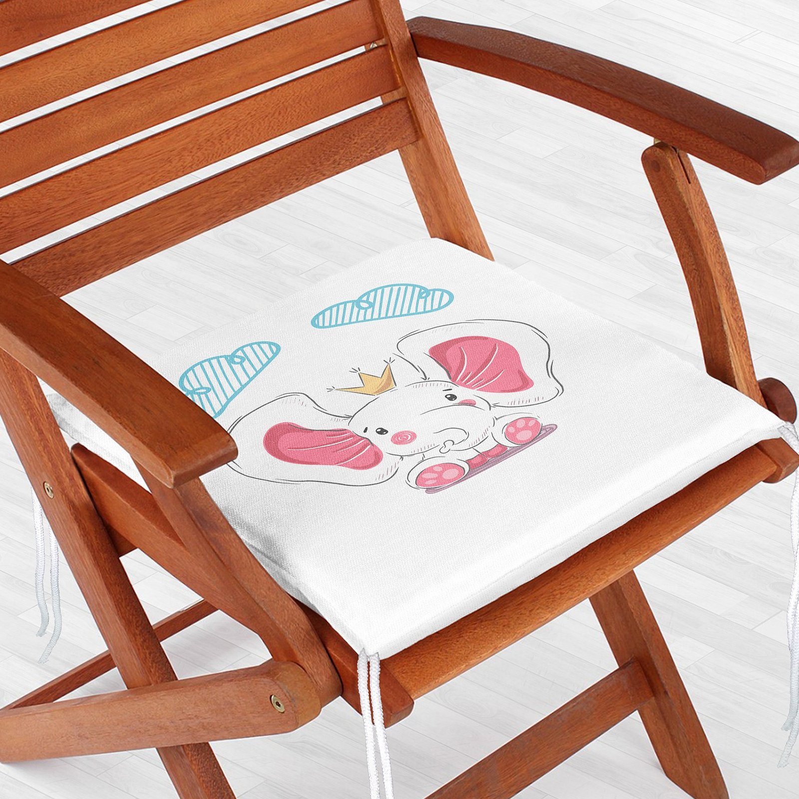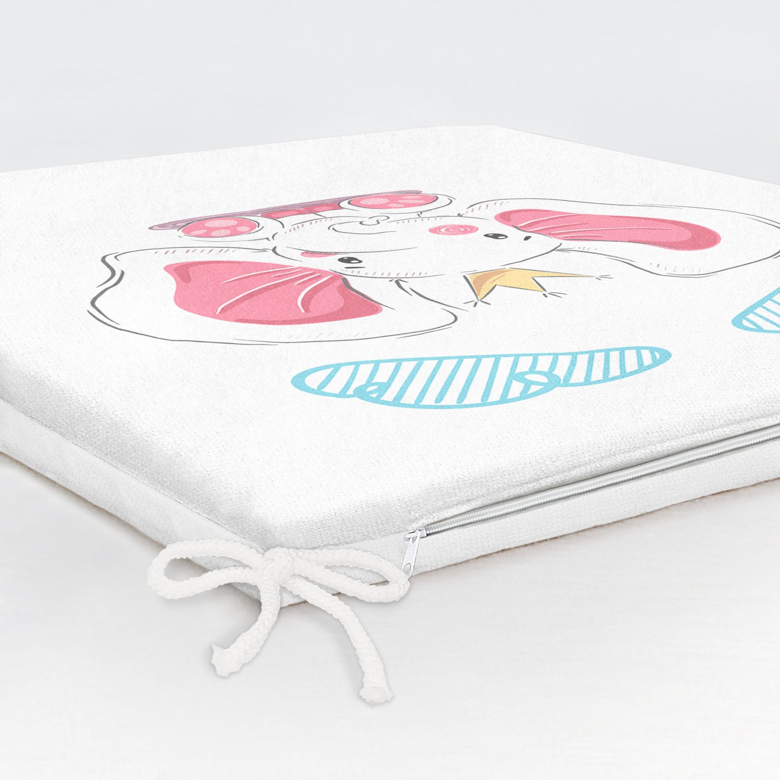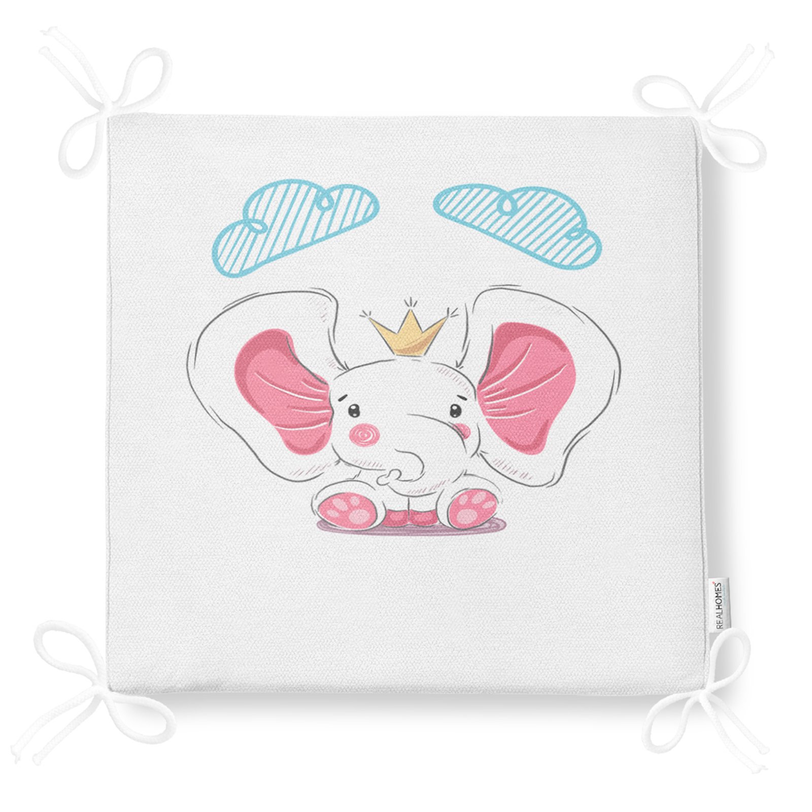 Beyaz Zeminde Sevimli Fil Tasarımlı Çocuk Odası Fermuarlı Sandalye Minderi