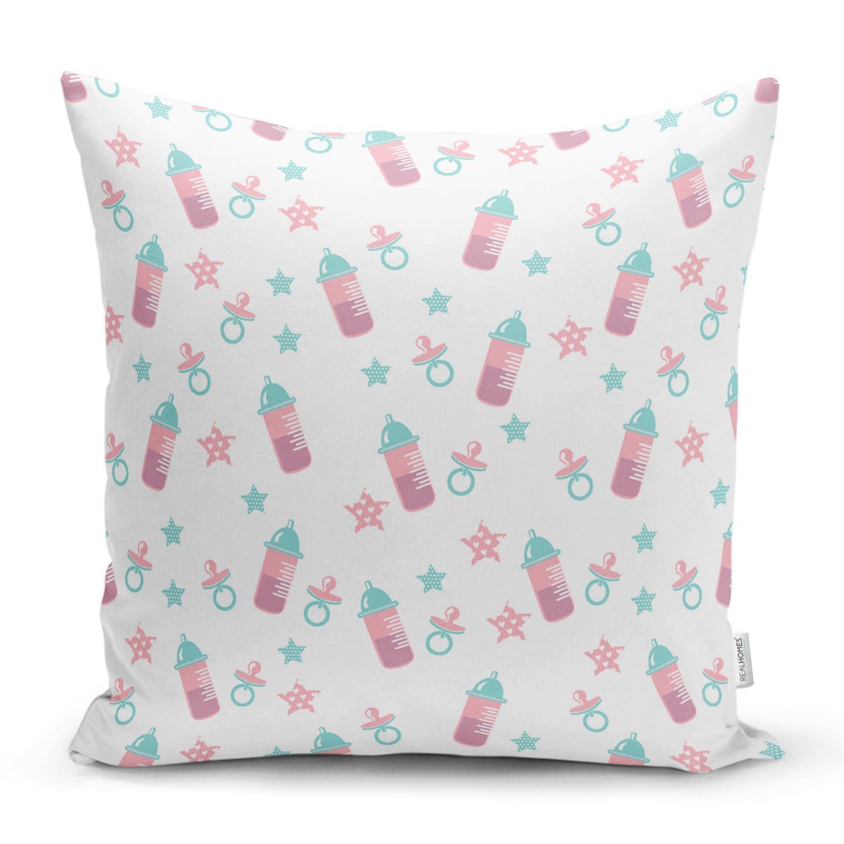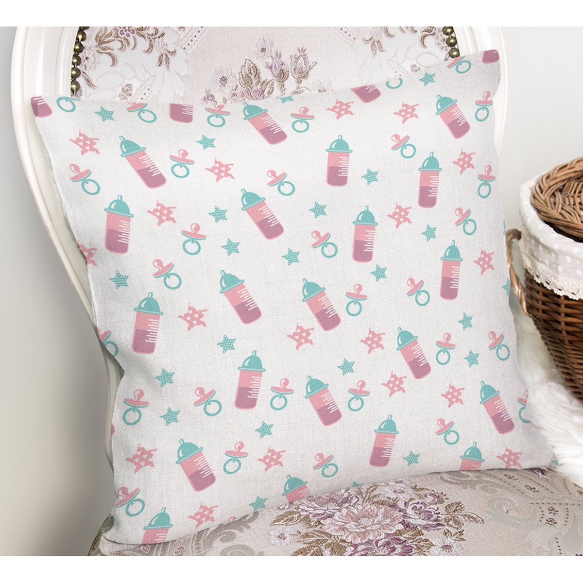 Biberon Ve Emzik Desenli Dijital Baskılı Özel Tasarım Modern Yastık Kırlent Kılıfı