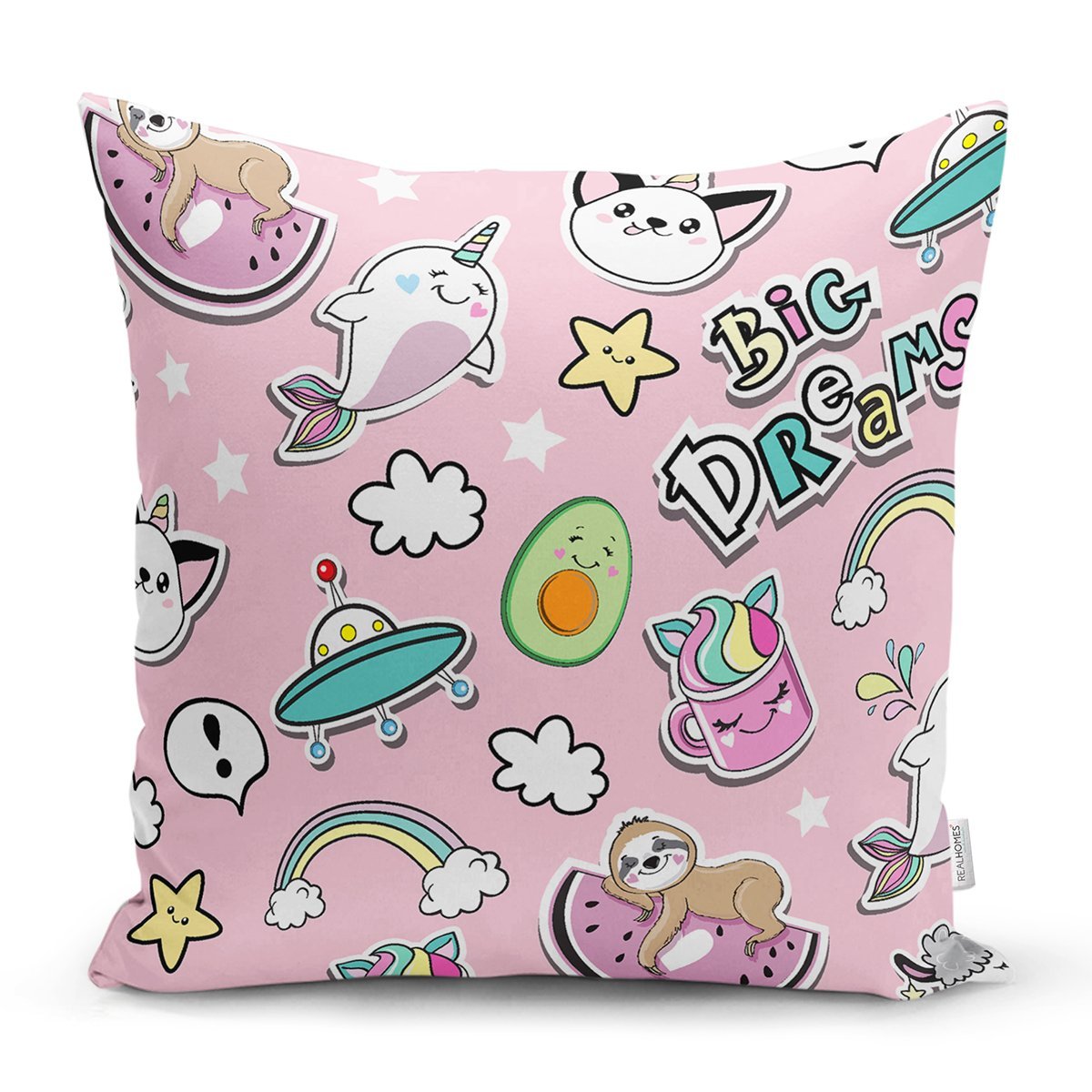Big Dreams Yazılı Bebek Temalı Dijital Baskılı Özel Tasarım Modern Yastık Kırlent Kılıfı