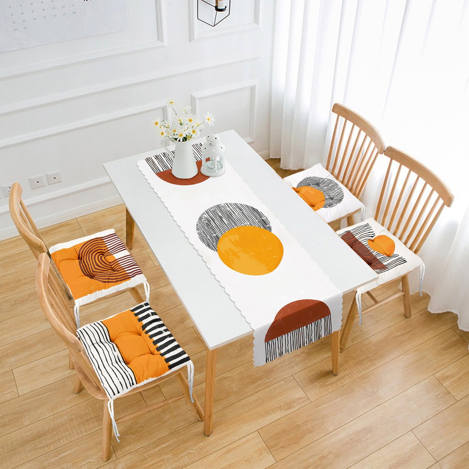 Bohem Özel Tasarımlı 4 Pofidik Sandalye Minderi ve 1 Runner Seti