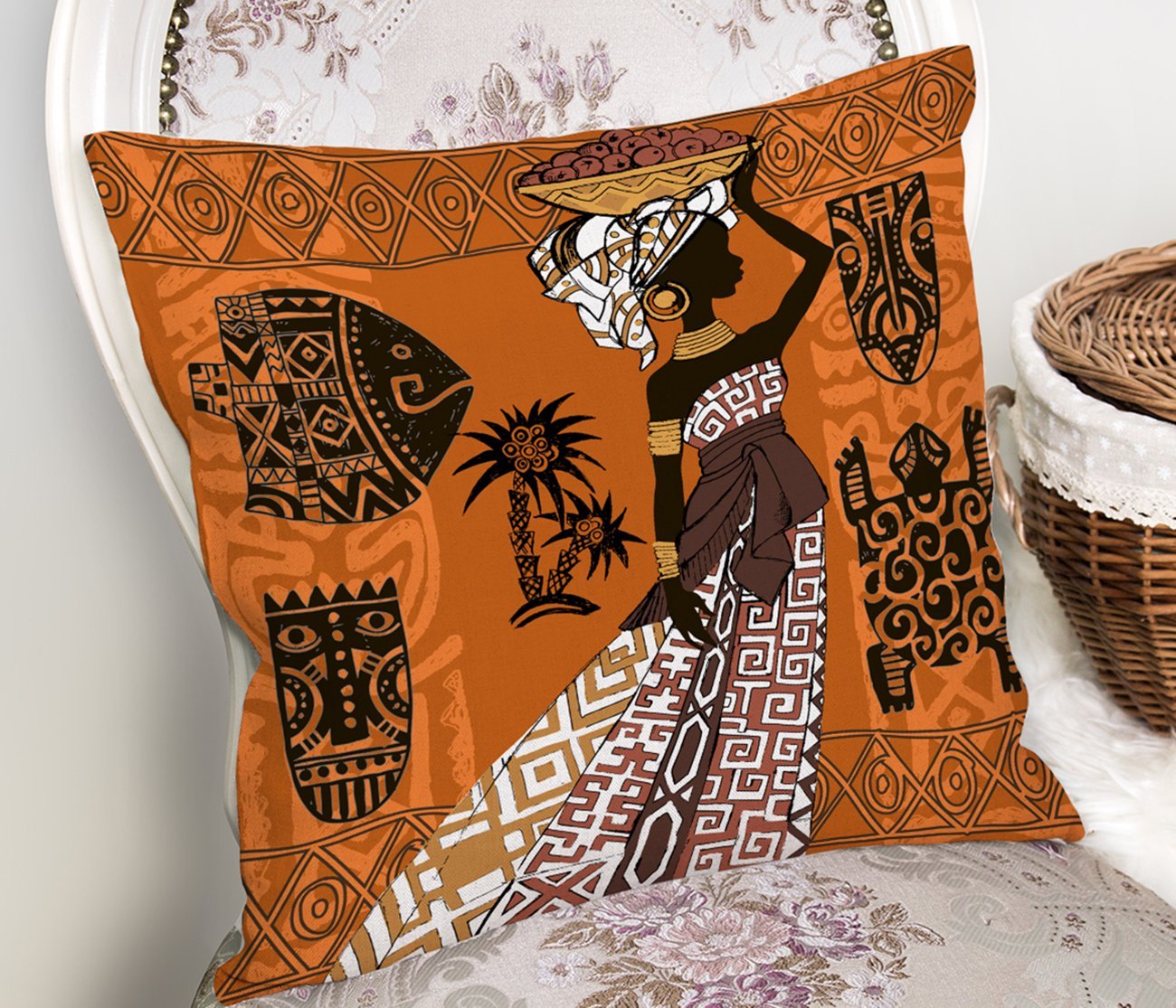 Çanaklı Arap Kadın Motifli Dekoratif Yastık Kılıfı