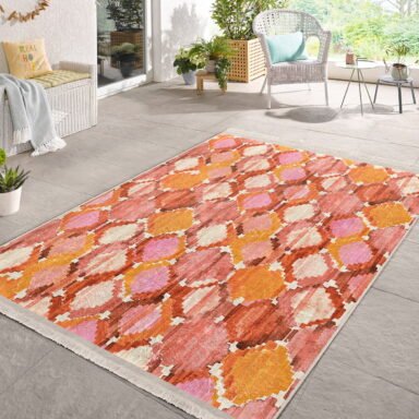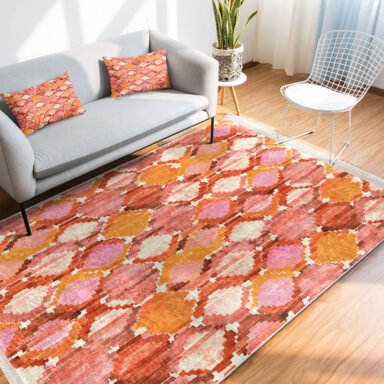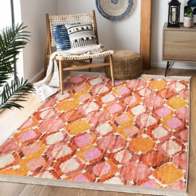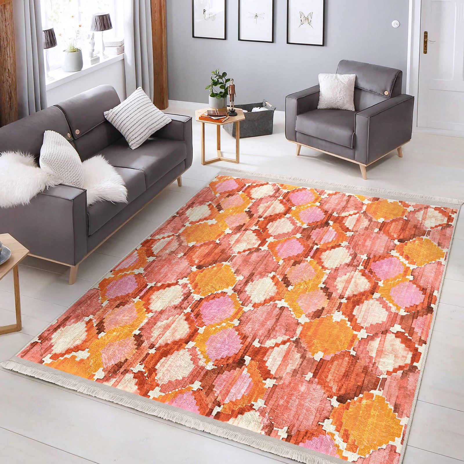 Canlı Renklerle Süslenmiş Renkli Motifli Modern Salon Halısı – Makinede Yıkanabilir Kaymaz Tabanlı