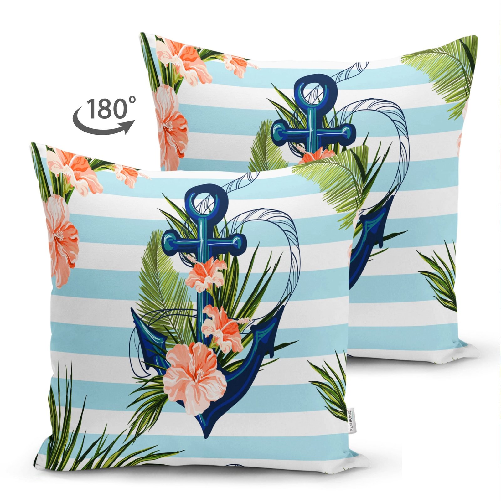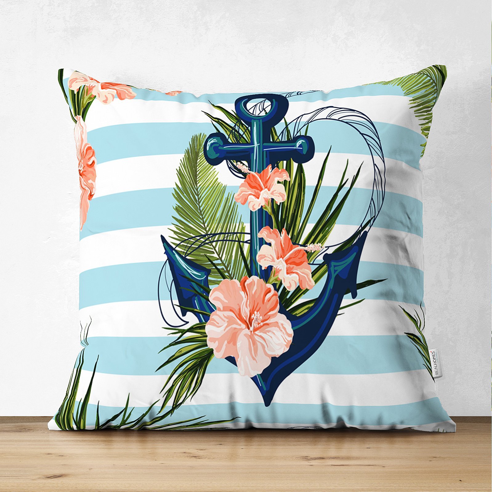 Çapa Desenli Dijital Baskılı Modern Süet Yastık Kırlent Kılıfı