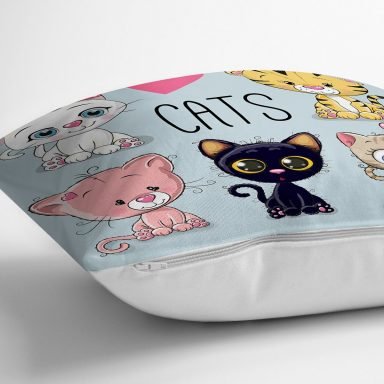 Cats Motifli Dijital Baskılı Modern Yastık Kırlent Kılıfı