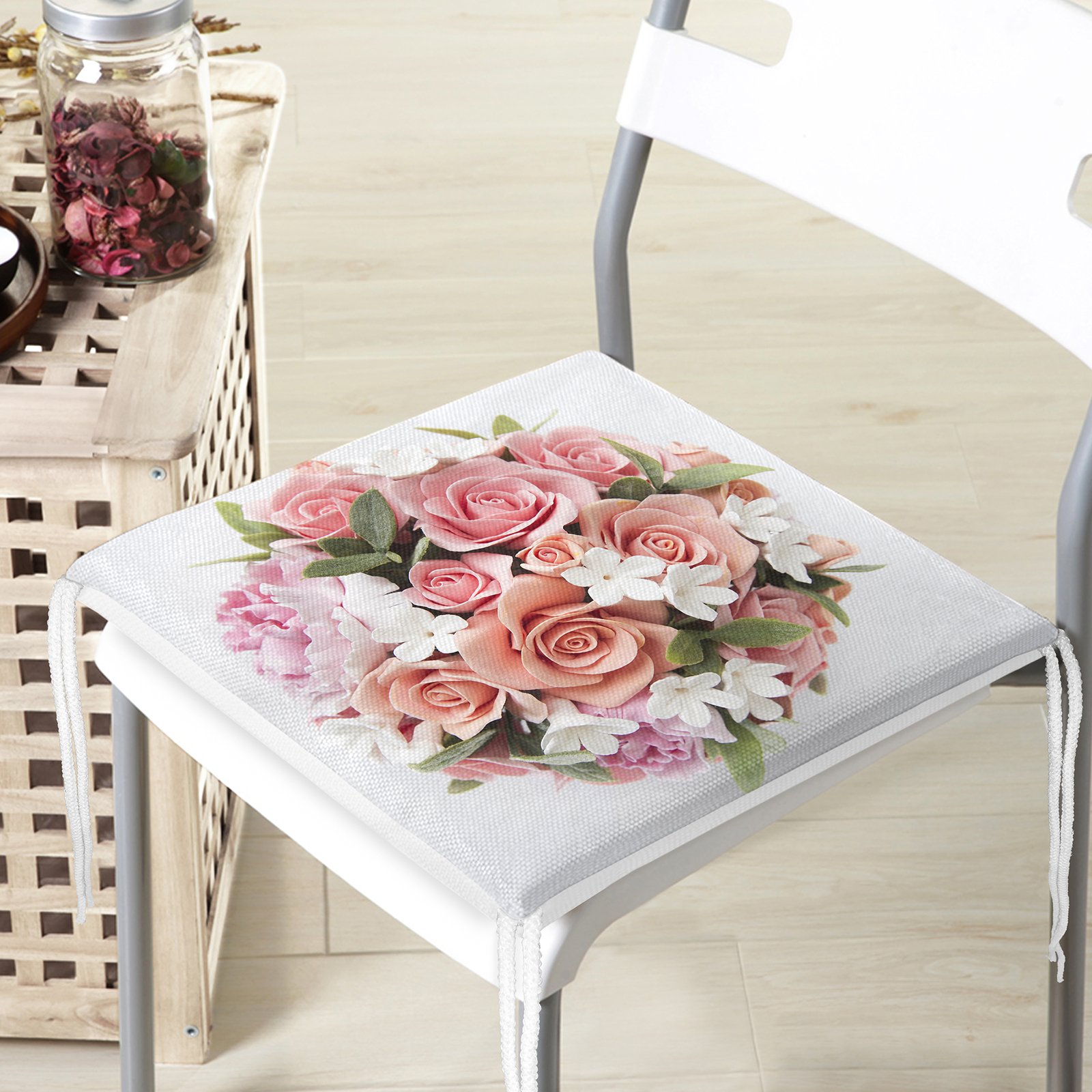 Çiçek Desenli Dijital Baskılı Fermuarlı Sandalye Minderi