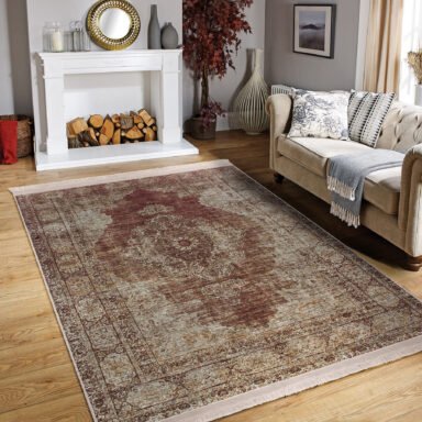 Çiçek Desenli Vintage Salon Halısı – 3D Dijital Baskılı, Kaymaz Tabanlı, Yıkanabilir Halı