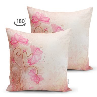 Çiçek Motifli Tasarım Dijital Baskılı Modern Süet Yastık Kırlent Kılıfı