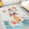 Çiçek taçlı sevimli tavşan ve kalp desenli pastel pembe kız bebek odası halısı, yumuşak tonlardaki çiçek detayları ve romantik kalplerle zarif, masalsı bir atmosfer oluşturur. Su boyamasını andıran tasarım, pembe ve krem ağırlıklı renk paletiyle bebek odasına sıcaklık, sevgi ve huzur katarak minik kızınız için sakin, güvenli ve neşeli bir oyun alanı sunar.